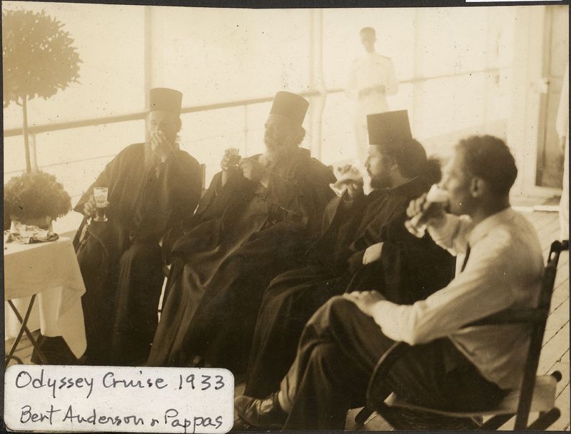 : "Odyssey Cruise 1933. Bert Anderson and priests"