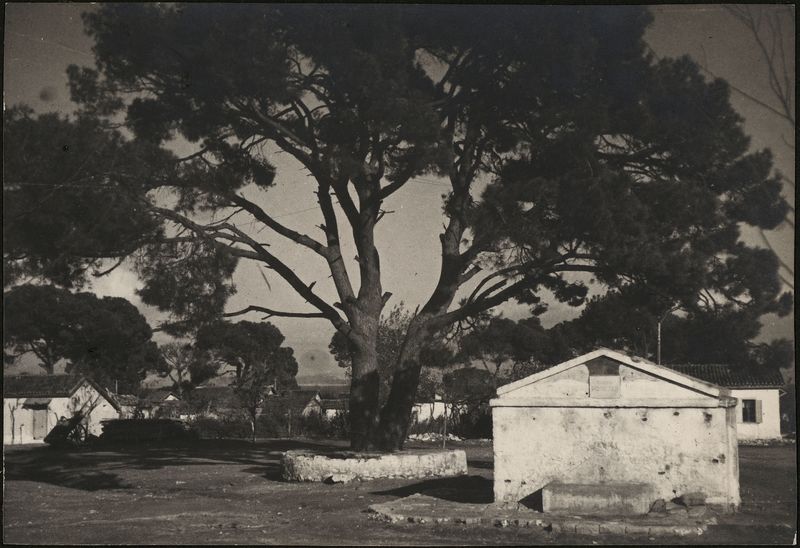: "Marathon. Enormous tree with farm buildings"