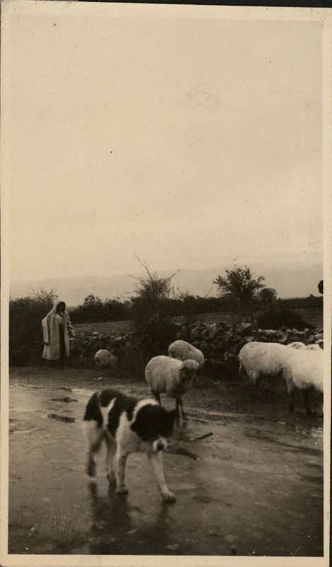 : "Shepard with sheep and dog"