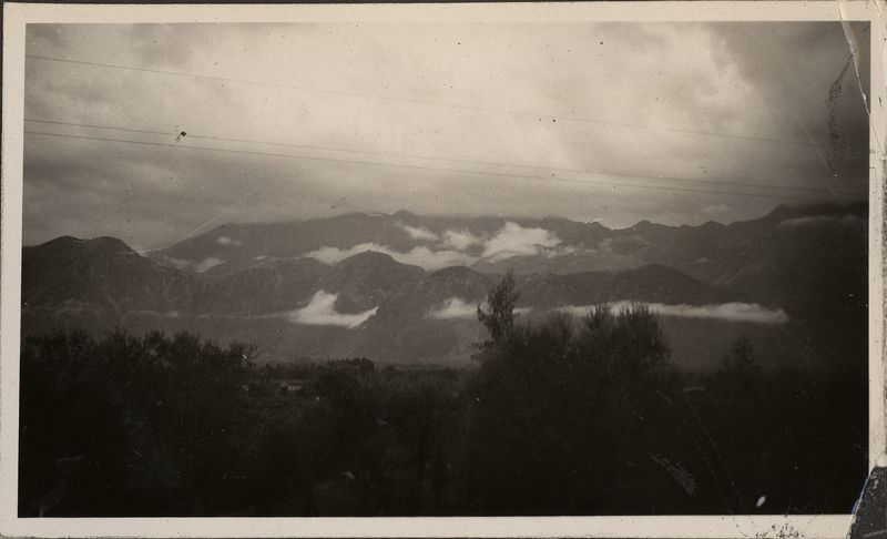 : "View to distant mountains with low clouds"