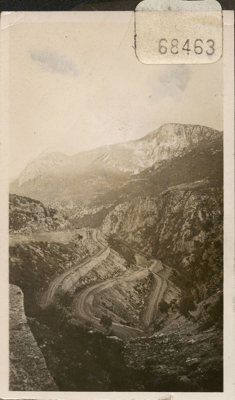 : "LANGADA PASS On foot Spring 1937 The Langada road 68463, "On cardboaard with title ""LANGADA PASS. On foot Spring 1937"". 68463""