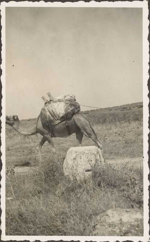 Description: ""Troy 1933 ""Odyssey Cruise"". Camel trains", "On cardboard, writes back ""taken on Troy w. On-SITE '94 walken of the seven Cities of Troy. Troy I - Dr. G.P. Steven, foreground FF Jones 1936""""