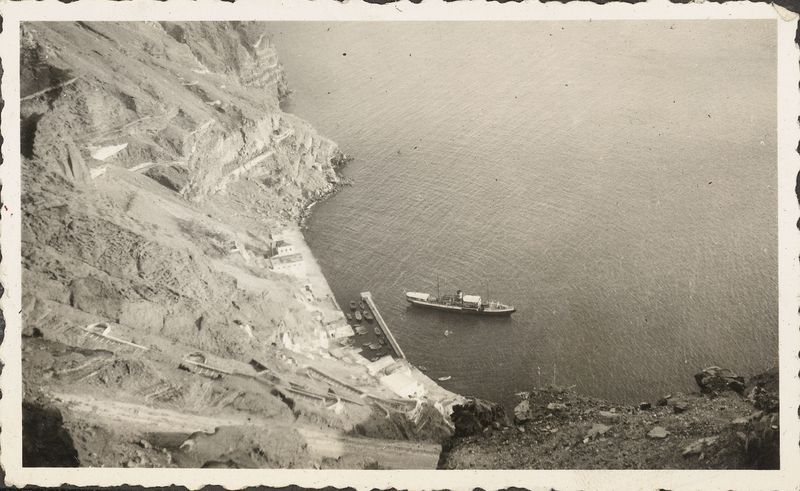 : ""Louis Lord's cruise. The ""Epiros"" in horbor at Santorini 1936", On cardboard"
