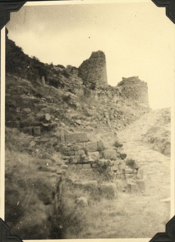 : "Pergamon Sept. 1938. Street from lower market to gymnasia., "On cardboarb with title ""Pergamon Sept. 1938"".""