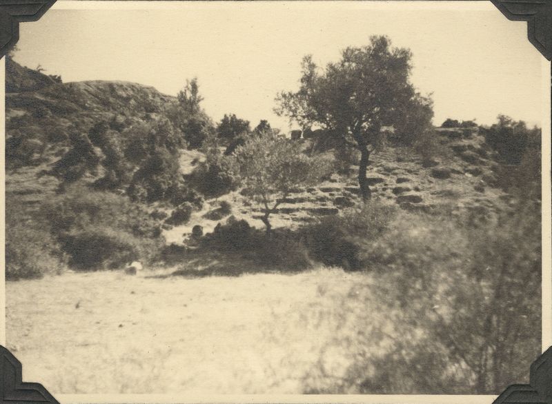 : "Theatre olive trees, "On cardboard with title ""Heracleia""""
