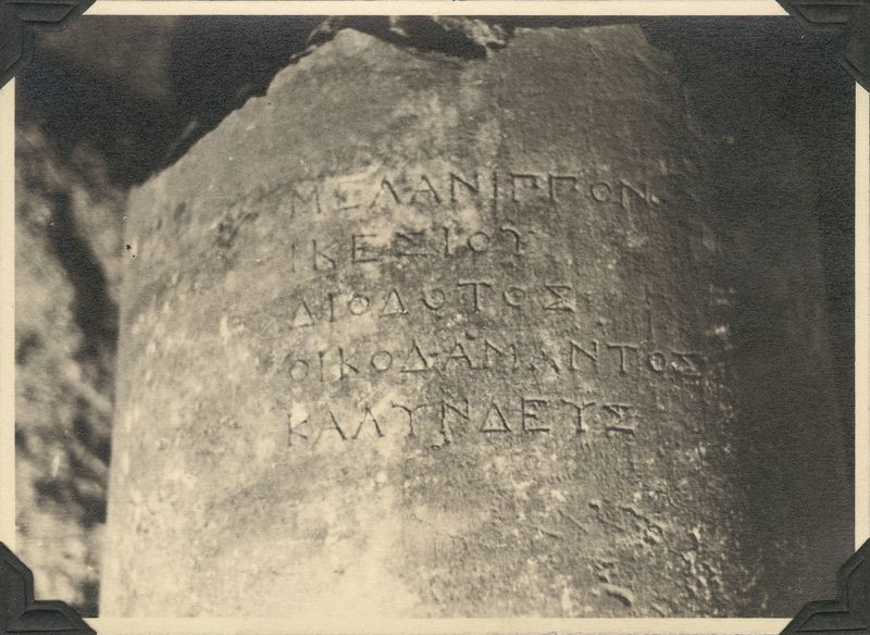 : "Heracleia - Inscription on column of Bouleuterion , "On cardboard with title ""Heracleia"". Written on back""
