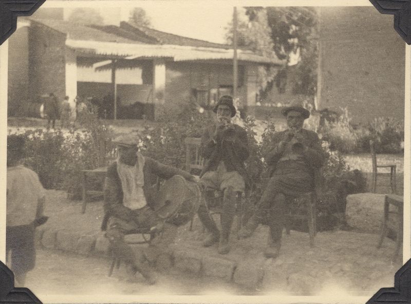 : "Aidin local orchestra playing on behalf of some , On cardboard"
