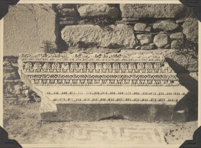 : "Nysa- Bouleuterion, architectural detail, "On cardboard with title ""Sept. Nysa 1938"". Written on back.""