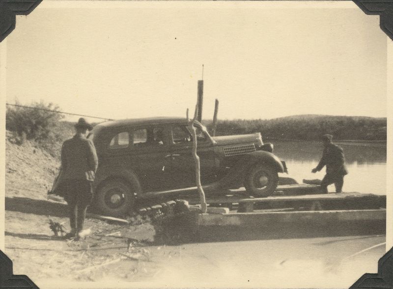 : "Asia Minor, Meander River. Putting car on float/barge"