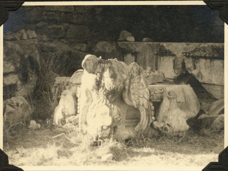 : "Anta capital with bull heads and lion headed sphinx, "On cardboard with title ""Didyma""""