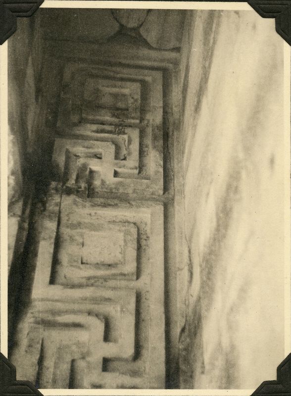 : "Painted sculptured meander on ceiling of ramp corridor, "On cardboard with title ""DIDYMA Sept. 1938"".""