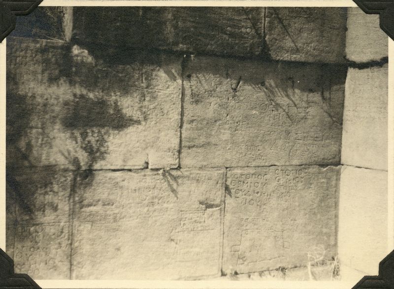 : "Graffiti in the school, "On cardboard with title ""PRIENE 1938 Sept"".""