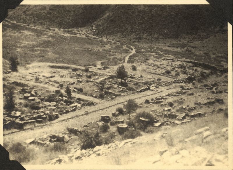 : "Main street lower part of town, "On cardboard with title ""PRIENE"".""