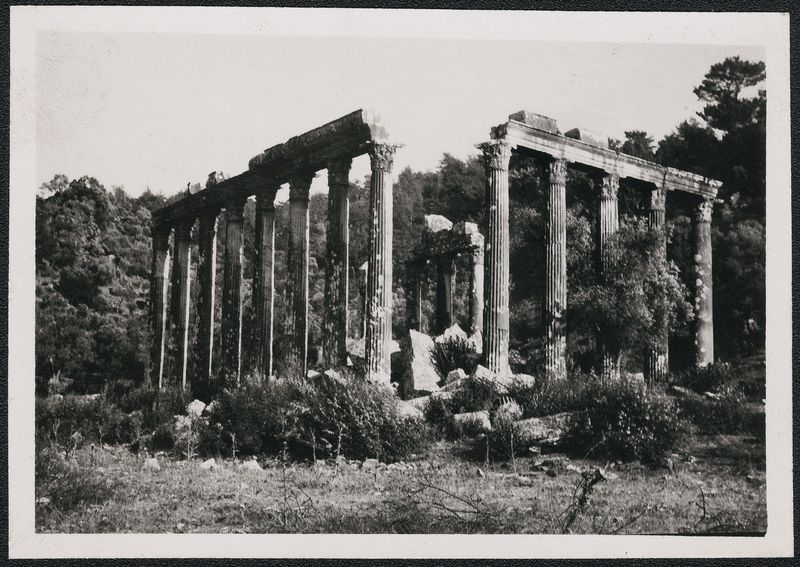 : "Temple at Euromos. W.A. McDonald, "On cardboard with title ""pgotos by Bill McDonald"". Written on back.""