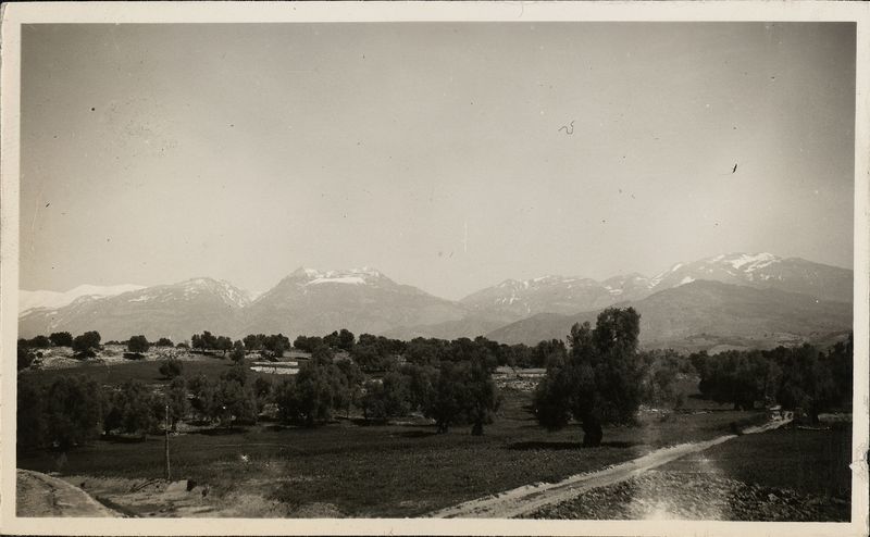 : "Fom distance with mountains in the back ground"