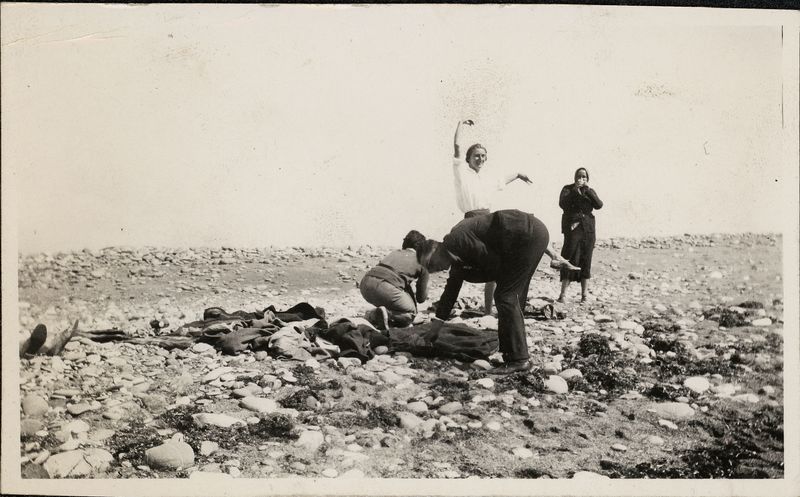 : "Swim - near Hagia Triada 1937 Saul Weinberg Mary Campbell (Roeduck) DC (Spitzer) Margaret Hill (Wittmann), Written on back"
