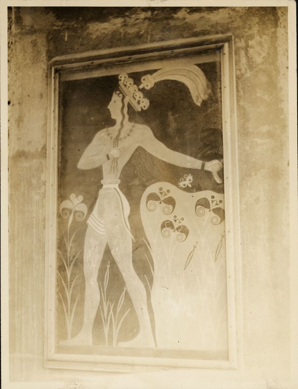 : "Crete, Cnossus. Minoan Palace. Chieftain frescoe"
