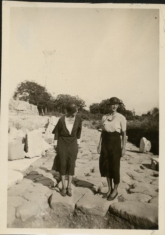 : "Mariam Coffin Canaday Doreen Canaday July 1933 Roman road - the Appian way in fact! Minturno, Written on back"