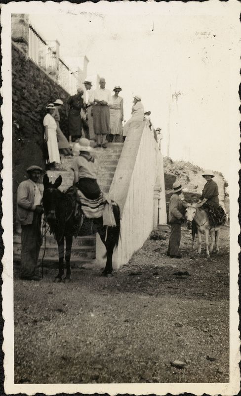 : ""Andros- Mary Hamilton Swindler mounted on light colored mule summer 1936 cruise of the ""Epirus"" w. Louis W. Lord ", Written on back"