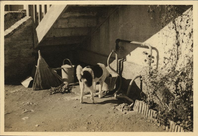: ""Oakley House 1937 ""Ethelontis"" Pavlos Daphnai dog, D. Canaday w. goats", On cardboard"