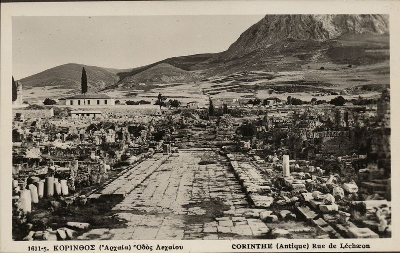 : "1611-5. ΚΟΡΙΝΘΟΣ (Αρχαία) Οδός Λεχαίου Corinthe (Antique) Rue de Lechaeon, On cardboard. Postcard"